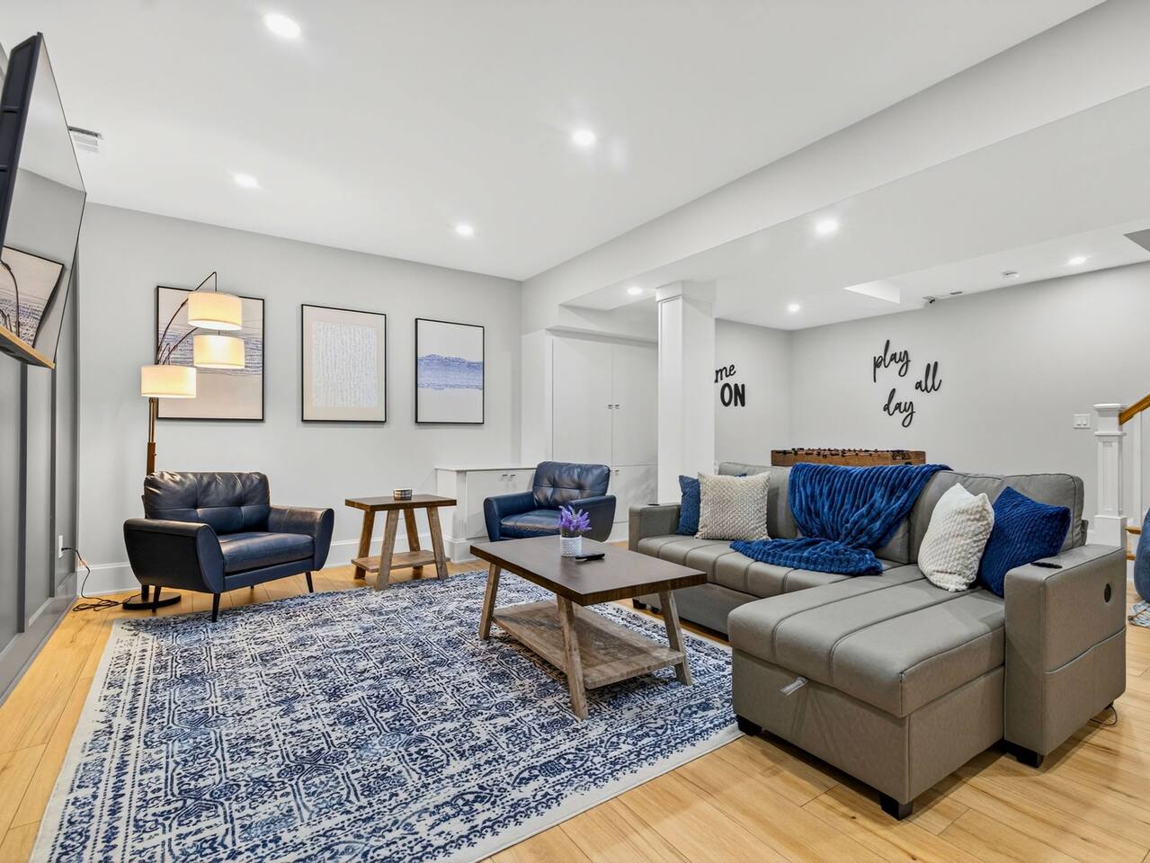This light-filled 4 bedroom home with 2 parking spots features high-end finishes throughout: hardwood floors, chef’s kitchen with stainless steel appliances and quartz counters, curated furnishings, and thoughtful touches that make staying here effortless. The open living and dining area is ideal for gatherings, streaming movies, or remote work (fast Wi-Fi and a dedicated workspace available). The downstairs family room is perfect for kiddos and adults alike. Four full baths keep mornings smooth for larger groups and families with children. Step outside to a private fenced yard — great for morning coffee or letting kids play. The house includes on-site parking (rare in the area), in-unit laundry, central air and heat. We pride ourselves on hospitality: clear self-check-in, a detailed house manual, and responsive hosts who want your stay to be seamless. Whether you’re visiting for a reunion, conference, or a city escape, LUX Somerville delivers style, space, and convenience. Quick facts & amenities *Sleeps: up to 14 *Bedrooms: 4 / Bathrooms: 4 *Fast Wi-Fi, dedicated workspace, smart TVs in all rooms *Fully equipped kitchen, coffee & tea station *Private fenced yard + outdoor seating/firepit *Washer & dryer, central A/C, new linens *Game room: game table, wet bar, games, toys, play area *Family-friendly: pack-n-play + inflatable toddler bed **ON SITE PARKING/2 SPOTS AND OUTDOOR SPACE/SEATING** Location Your home away from home is tucked away in a friendly neighborhood with tree-lined streets, yet just a short walk or drive to a variety of vibrant dining and entertainment scenes. You’ll find excellent cafes, restaurants, and bars nearby, along with grocery stores and local shops. Public transit is easily accessible—Hop on the Green Line Extension or grab a bus to quickly reach Harvard, MIT, Tufts, or downtown Boston. • Both the Green and Orange line - 7 minutes • Downtown Boston – 9 minutes • Logan Airport - 9 minutes • Grimmons Park – 1 minute • Mystic River Reservation Trail and Boathouse – 2 minutes • Broadway – 2 minutes • Assembly Row – 4 minutes • Foss Park – 4 minutes • Union Square – 10 minutes • Harvard – 19 minutes • Tufts – 9 minutes • MIT – 13 minutes • Fenway Park – 19 minutes House Rules Please see our strict house rules in place to keep the highest quality stay for all of our guests. •Please be respectful of the neighbors. The home is in a very respectable and quiet neighborhood. •No loud noise or music past 9 PM •Please be sure to unplug all unused appliances, hair curler, laptop chargers from socket when leaving the home. As well as turn off the stove and oven. Return AC to 75 when checking out or heater to 68. •Adult supervision of children on the property at all times. •NO SMOKING or VAPING of any kind in the house or on the premise. A $1000 fee will be applied if any evidence is present to treat air and clean carpets and scrub walls. •No parties, events, birthdays, bachelor or bachelorette stays. Right to cancel reservation without refund and a minimum fine of $1000 will be imposed if evidence is detected. •Checkin time is 4 PM. •Checkout time is 10 AM. •No Extra / Overnight Guests (having more guests than stated in your reservation or if the number does not match, we reserve the right to cancel your reservation) •No Mail / Packages Delivered to the property. Please send it to a nearby pick up. •No Moving / Rearranging of the furniture (except pull out couch) •No Unplugging of the electronics like TVs, cable boxes, lamps, Roku sticks, etc. •No Pre-Checking Bag Storage •No Pets •No Parking anywhere other than assigned spaces ***We reserve the right to keep your security deposit if these rules are broken*** These rules enable us to upkeep the highest quality stay for our guests.